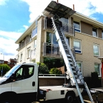 Verder zijn we ook nog in het bezit van een handige kleine lift die je in een steeg of een tuin kunt opbouwen. Deze gebruiken we op plaatsen waar onze autolift niet kan komen. Deze kleine lift kunnen we opbouwen tot de 3 e verdieping.