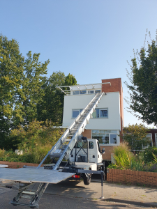 Deze gebruiken we op plaatsen waar onze autolift niet kan komen. Deze kleine lift kunnen we opbouwen tot de 3 e verdieping.